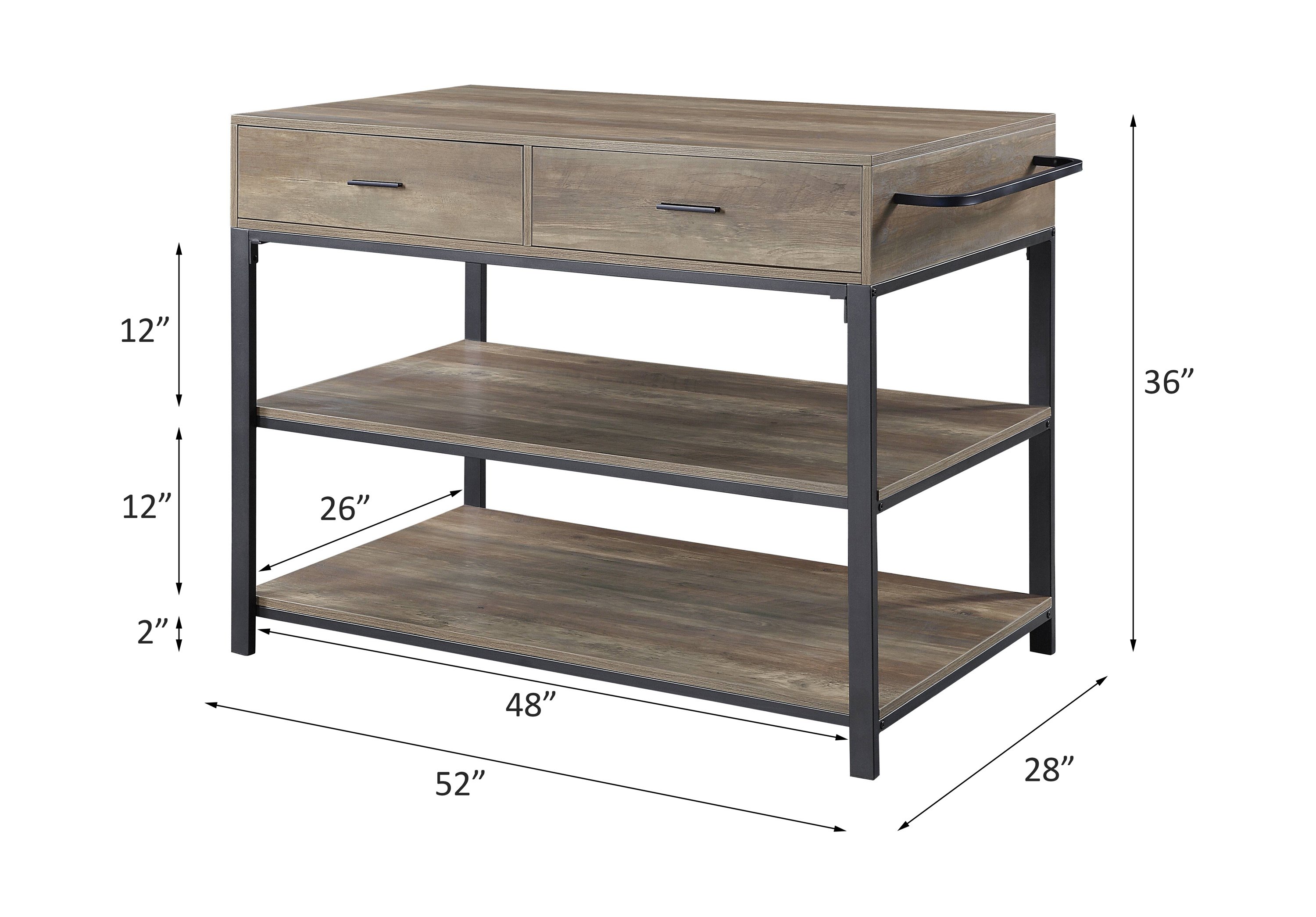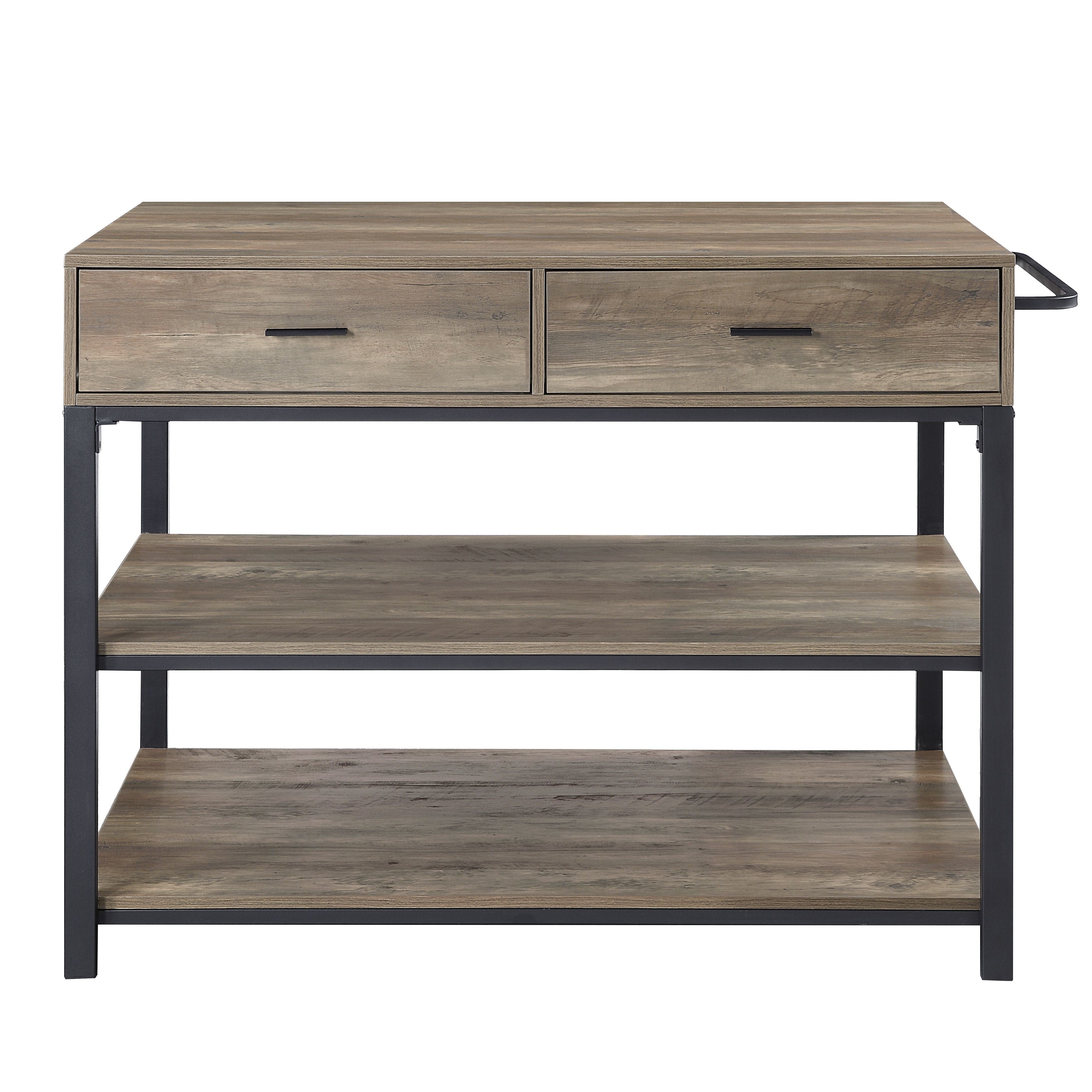 ACME Macaria Kitchen Island, Rustic Oak & Black Finish AC00403
